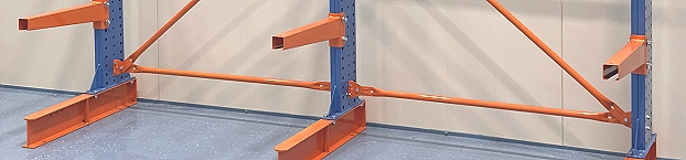 Cantilever racks are designed for the effective storage of goods such as wooden boards or pipes, separation of standing long goods. You can buy STRONG cantilever racks in our store with steel powder coated upright in blue, cantilever arms in orange. Due to the modular design, you can also expand single-sided and double-sided cantilever racks with additional arms or bays at a later date. The arm load, or the load capacity, of STRONG cantilever racks for the quick delivery ranges from 400 kilograms to 500 kilograms, the standard height 2,5 to 4 meters. We realize also individual cantilever racks on request in the form of custom-made products - especially for your individual needs. Please take into account that this may result in longer delivery times. The single-sided or double-sided cantilever racks can be fixed to the floor with the help of bolt anchors. The adjustment step of the cantilevers is 100 mm.
